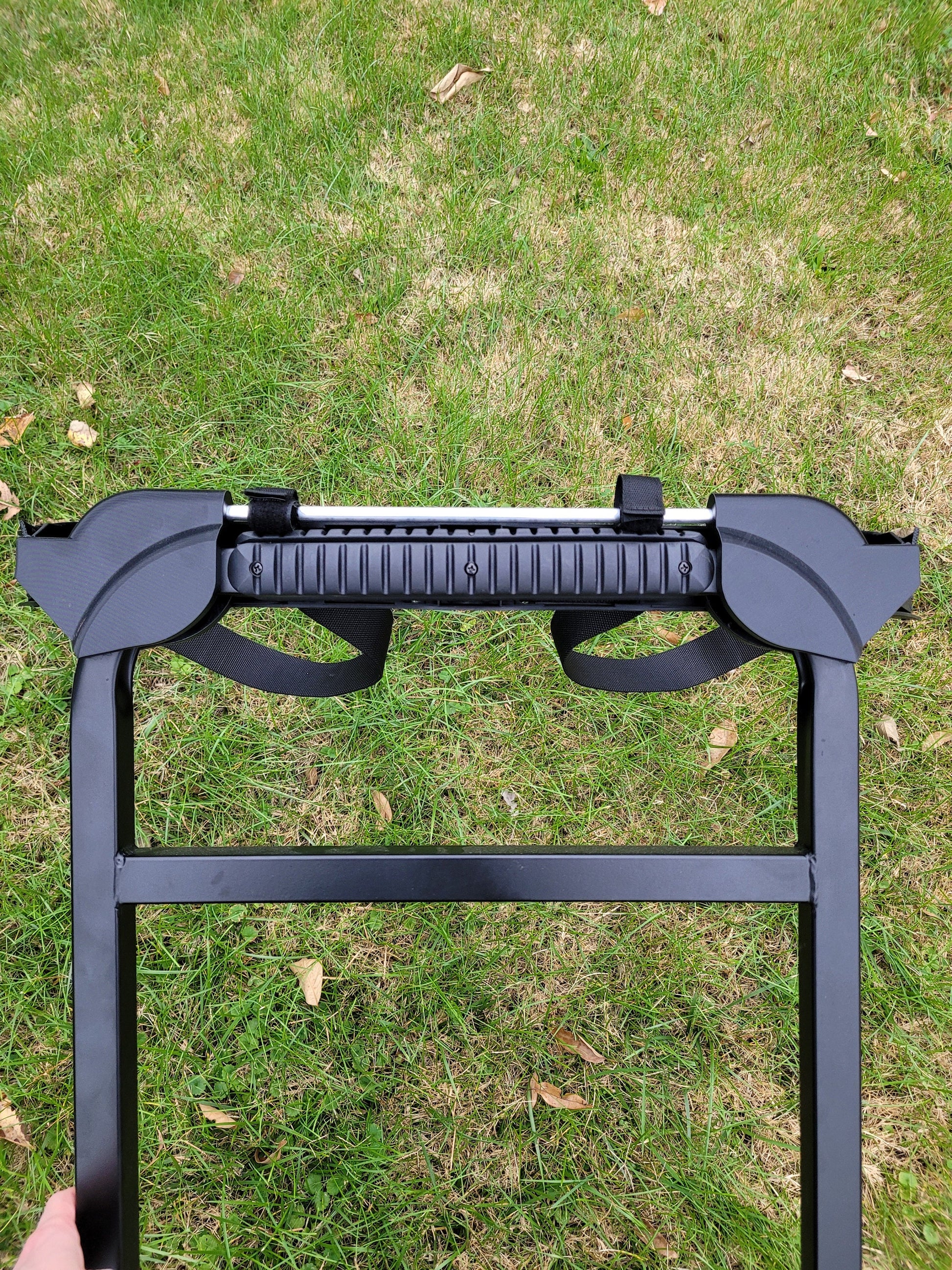 This Brand NEW Golf Bag Holder Design is made specifically for the GTW Deluxe Rear Seat Grab Bar, sold on Amazon and Ebay part No. 01-200. (Deluxe Grab Bar is not my part, it is sold separately by GTW) The photos show the grab bar with the rubber hand rail cover removed, as the design is so tight fitting that it is required. I've been trying to think of a solution for all the people that have Steel Frame Rear Seats such as the Genesis 150, the Mach 3, the Route 66, and more. This seemed like the best grab bar I could design around as it is sturdy, wide, and even has an attachment rail I can design more goodies for going forward. Keep in mind, this listing DOES NOT INCLUDE the GTW Deluxe Grab Bar, I am assuming you already have purchased it or are going to. Please verify the grab bar will work with your seat footrest, you will need to check with GTW to confirm, I am not responsible for compatibility of the grab bar to your golf cart rear seat, only of my golf bag holder attachment to the grab bar.