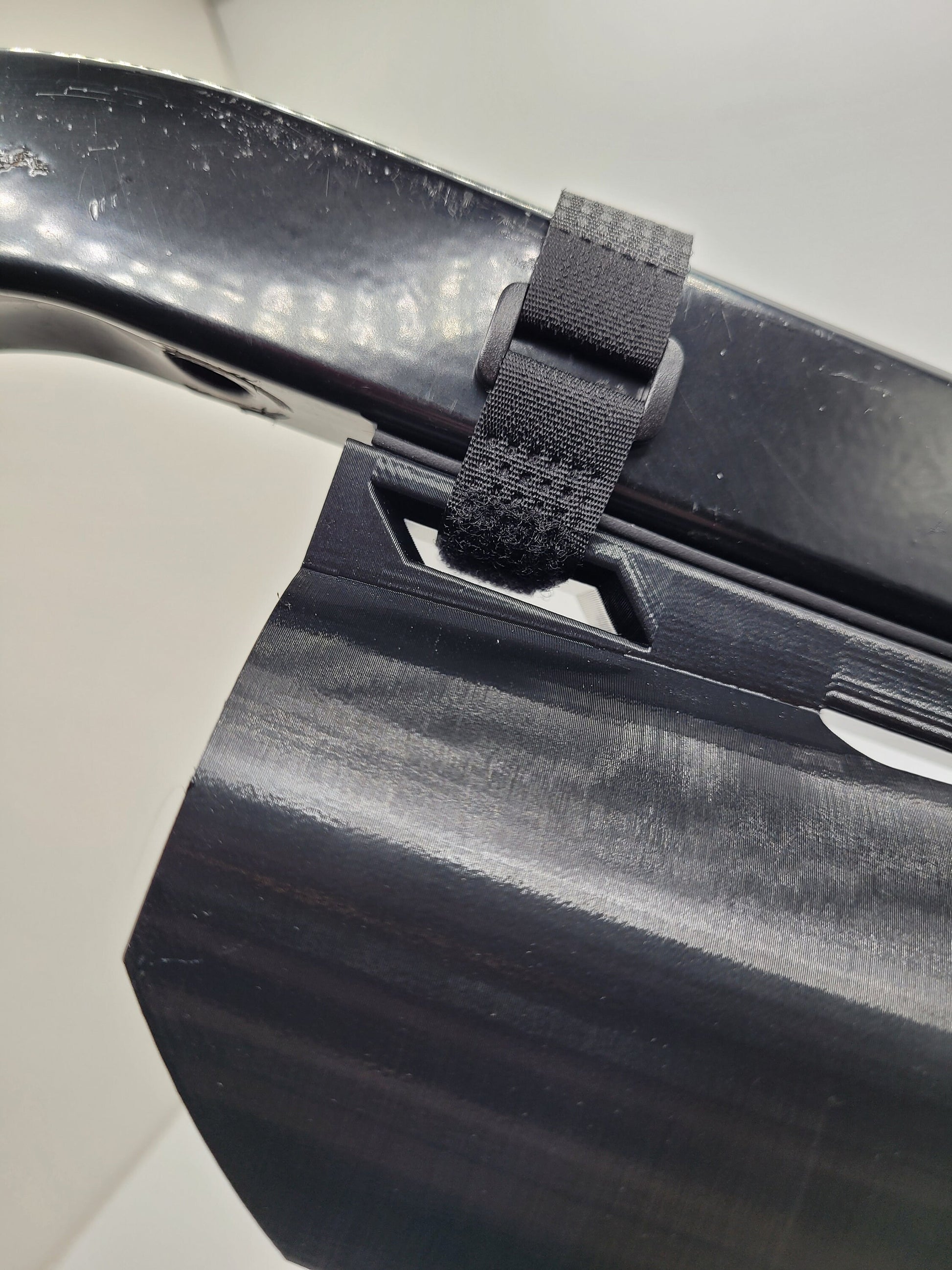 The speaker holder is made out of flexible, durable, Matte Carbon Fiber Infused PETG filament which is akin to water bottle plastic. This means the round holder retainers will easily allow you to press the JBL speaker in, but will hold on tight for the ride. Pull the JBL speaker back out from one side, and the jaws will open wide for easy removal of the JBL.
